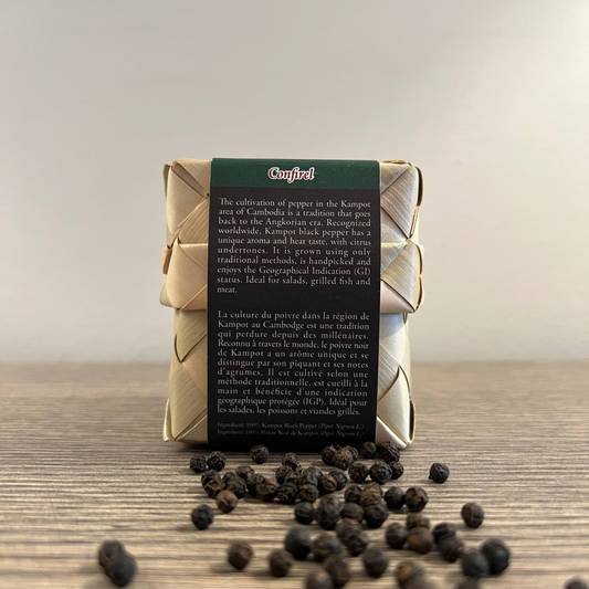 Every grain of Kampot pepper is a product of meticulous care — grown without chemicals, harvested by hand, and sun-dried beneath the Cambodian sky. With notes of citrus, fruit, and subtle heat, Confirel’s pepper is a favorite of Michelin-starred chefs and conscious consumers alike.
