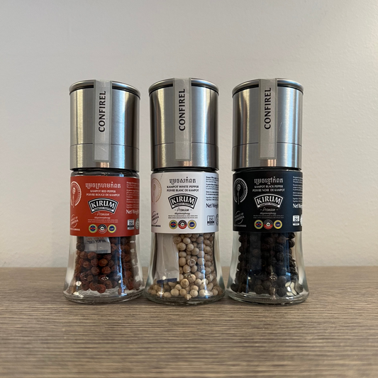 Every grain of Kampot pepper is a product of meticulous care — grown without chemicals, harvested by hand, and sun-dried beneath the Cambodian sky. With notes of citrus, fruit, and subtle heat, Confirel’s pepper is a favorite of Michelin-starred chefs and conscious consumers alike.